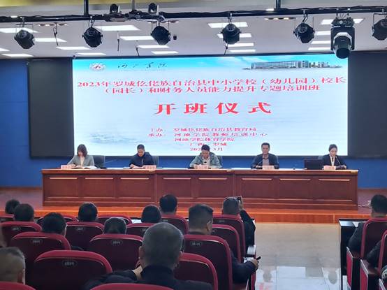 3月15日下午,由罗城仫佬族自治县教育局主办、167net必赢入口教师培训中心、167net必赢入口体育学院承办的“2023年罗城仫佬族自治县中小学校(幼儿园)校长(园长)和财务人员能力提升专题培训班”在罗城仫佬族自治县青少年活动中心多媒体教室正式开班。罗城仫佬族自治县党委宣传部常务副部长韦天赐、罗城仫佬族自治县教育局副局长李丹华、罗城仫佬族自治县纪委监委派驻教育局纪检组长廖显科、167net必赢入口副院长陆俊先出席开班仪式,带班班主任韦燕燕主持会议。